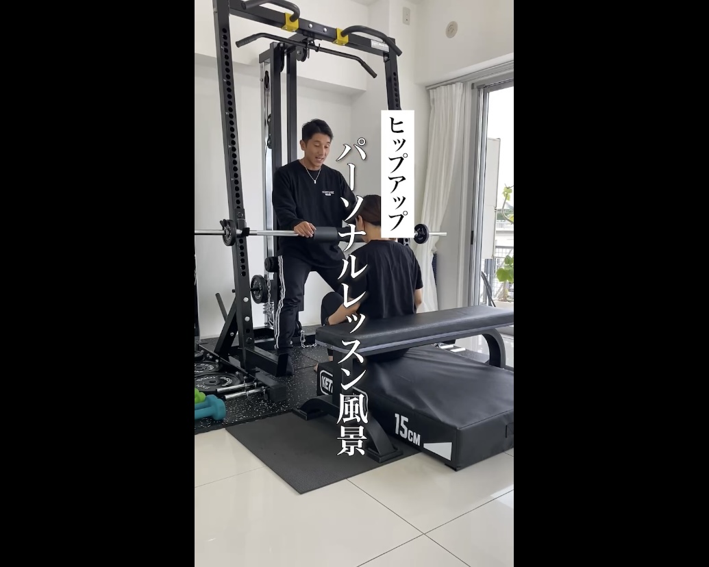 今回は、お尻やもも裏を鍛えるヒップスラストというトレーニングの様子です。