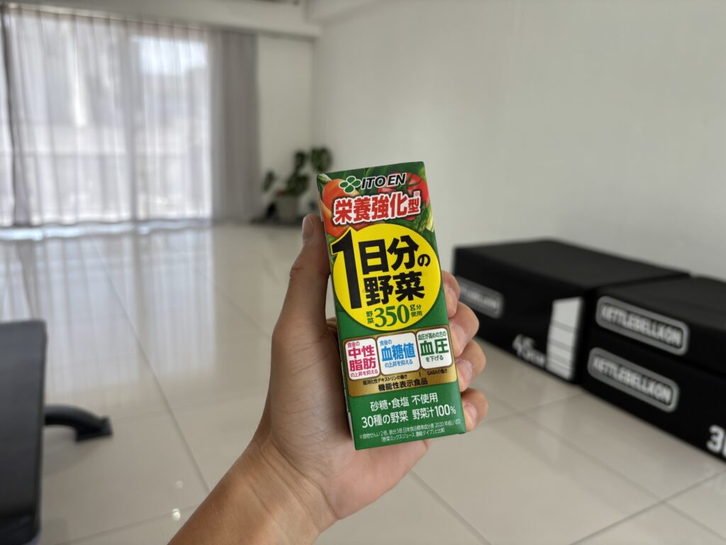 一平トレーナー写真の野菜ジュースも体に良さそうな雰囲気ですが、糖が多く入っているのでダイエット中には控えてほしい飲料です。